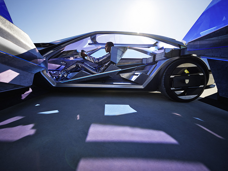 宛如玻璃膠囊的座艙一路延伸至駕駛和前排乘客的腿部,從側面看,該設計仍然具有Peugeot一貫優雅的特質,不過真正的魅力在於玻璃座艙讓外型和車艙之間的界線變得更模糊,預料這將會成為Peugeot 2025年開始量產的新世代電動車共同特色。