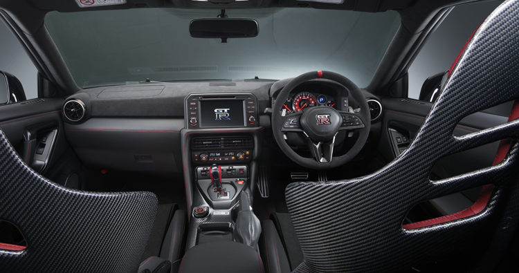其它亮點還有更寬的前葉子版、Nismo可調節車輛動態系統以及內部與外部專屬Nismo特殊標誌。進到座艙內,沒有做太大變動,大量使用碳纖維材質,滾上紅色車縫線增添運動氣息。Nismo版本換上兩張機械感十足碳纖維賽車座椅,包覆性極佳又好看。