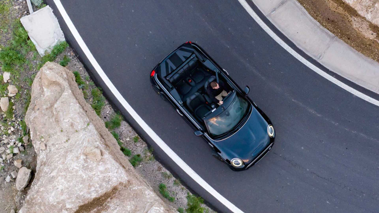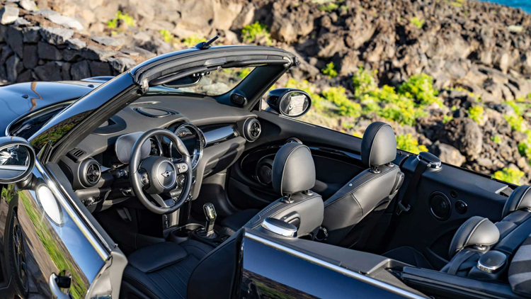 所配備的電動軟頂篷在30km/h的車速下只要按下按鈕均可啟閉,啟閉過程約需18秒。而在關篷狀態下也可以滑移開啟前座上方的部分,像是天窗一樣。還可透過MINI APP中的EV專用功能透過手機遠端操作充電功能與設定,或是開啟冷暖空調。
