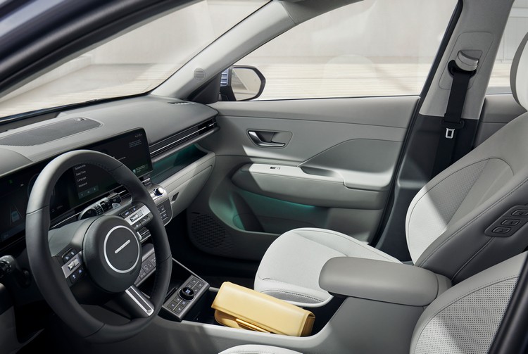 前座的「零重力」舒適座椅可有效平均分散身體重量,減少駕駛疲勞。線條筆直的後排座椅容易清理且可做兩段式椅背傾斜調整。行李廂空間可以提供達466公升的收納容量,感應式電動啟閉尾門也讓取放行李更為方便。Kona Electric在車頭還有31公升容量的前行李廂。