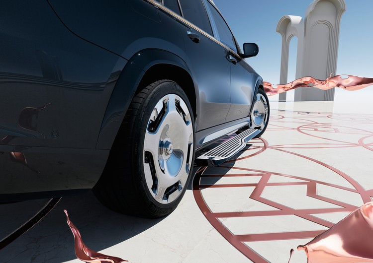 而更高規、掛上Mercedes-Maybach品牌的車型則配專用的直柵式水箱罩,不僅以鍍鉻提升質感面積也更進一步加大。前保桿兩側的導氣口上則可看到許多Maybach徽飾圖案。輪圈部分追加了附鍛造輪圈螺帽的23吋專用鍛造鋁圈。