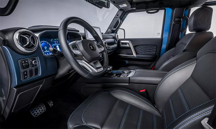 這款SUV是基於北京汽車BJ40打造的,設計風格與Jeep Wrangler極為相似,車頭的水箱護與頭燈又有點類似Lamborghini和Land Rover。然而,Ickx指出,這個格柵完全由碳纖維製成,讓它看起來更加威風。