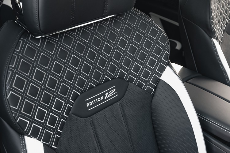 內裝比較獨特的設計,是植入Mulliner銀色滾邊並為皮椅刺上Speed Edition 12名稱,空調出風口控制裝置還看得到「12」的字樣,各部位車縫線也有對應的撞色對比配置。而在副手座前的黑色飾板上,除了嵌入專屬徽飾之外,還有一串數字,用來代表這具引擎汽缸的點火順序。
