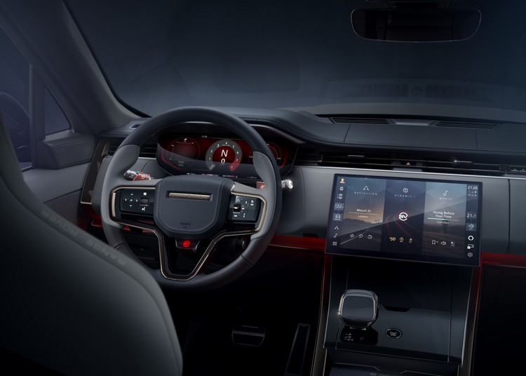 底盤部分還換上了新副車架、懸吊支臂並重新調整懸吊幾何。新的電動輔助轉向機構有更快的轉向齒比來提升車輛轉向靈活度。配胎則首度採用胎寬前:285、後:305的Michelin Pilot Sport 4全天候胎,可產生達1.1G的橫向加速G值,比配夏季胎的Range Rover Sport SVR還要高出22%,已經是賽道導向跑車胎的等級。