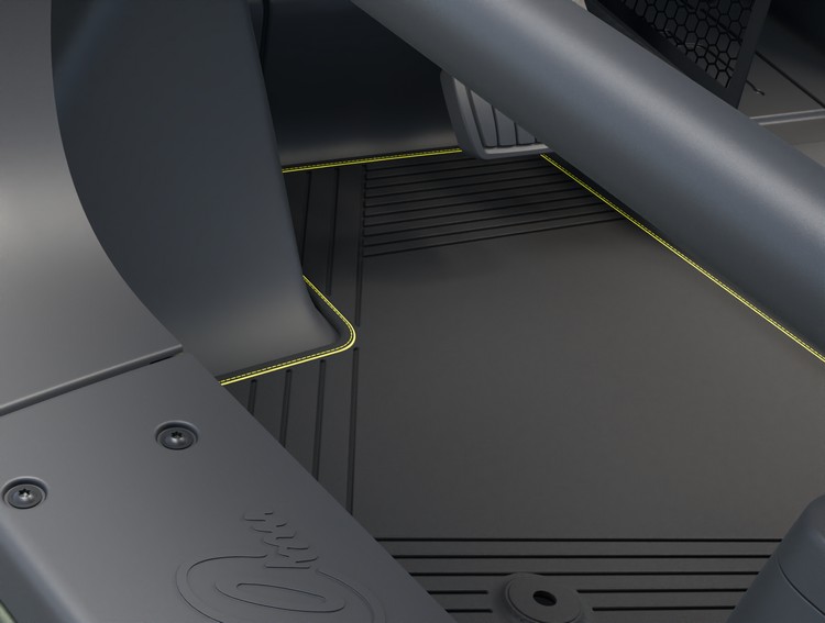 車內同樣以黑色主調來搭配黃色的裝飾凸顯,前方控台上的收納空間、掛勾、座椅縫線與地毯縫線都是使用黃色。「音響系統」則是配備輕量的「Ultimate Ears Boom」藍牙喇叭,也可以拆下來隨身帶著走,別看它跟一般汽車音響系統比起來有點「隨意」,在車內同樣可以提供360度的音場體驗,且具有很好的防水性與耐用性,電池單次充飽最多可以使用15小時左右。