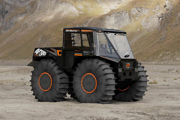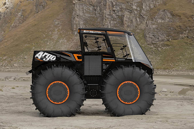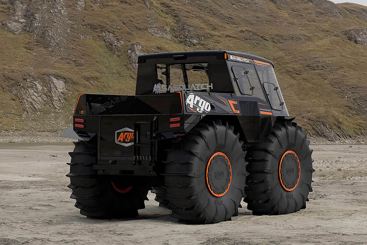 加拿大機動車輛製造商ARGO推出一款全地形越野皮卡Sasquatch XTX,這款車長不到4公尺、軸距卻長達2200mmm的兩棲沼澤怪物,其實是以多年前曾在Youtube上爆紅的烏克蘭全地形車Sherp ATV進行改良的,不過這次設計和製造都在加拿大,除了多了貨斗的載物平台,還把輪胎升級為超巨大的71吋,使其爬坡及涉水極限得以擴張。目前這款車還沒釋出正式售價,不過預定今年第三季上市時,應該就會公佈更多相關細節。