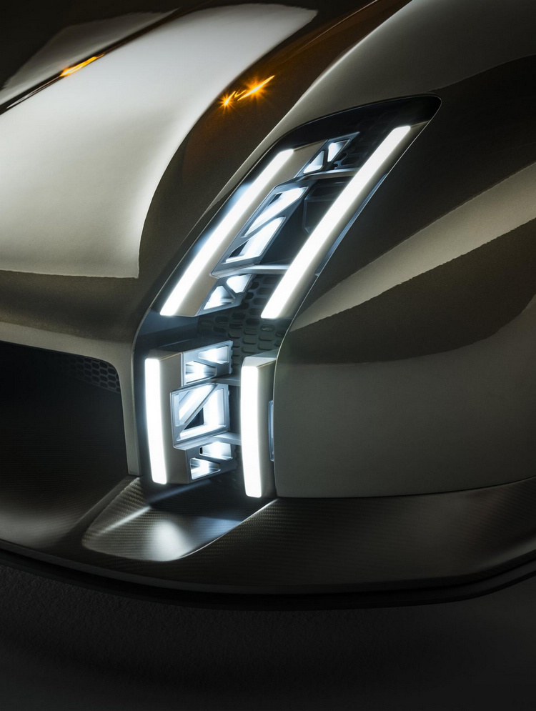 車身的肌理線條說明了超級跑車的外觀也可以不必張牙舞爪,低矮的車身高度不到1.2公尺,並採用專屬的金屬火箭色塗裝。車身腰線之下隨處可見以碳纖維打造的設計元素,並在表面施以亮光烤漆使其略帶色彩,但碳纖維紋路仍清晰可見。