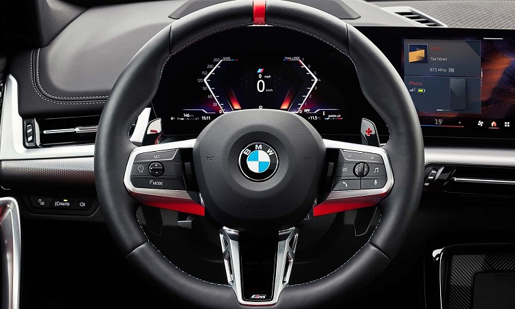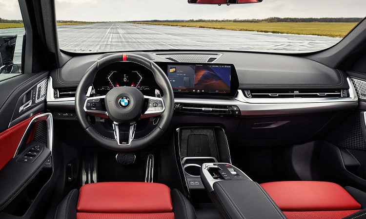 車內大致配置於X1相同,換上更大的雙螢幕建構出曲面螢幕,系統使用最新iDrive 9.0系統。其餘則透過飾板和顏色來增進、強化內裝運動氛圍,雙前座換上跑車化賽車座椅,方向盤換檔撥片面積增加,可以在車內多處看到M Power標誌,讓標榜功能性的X1得到熱血視覺張力。