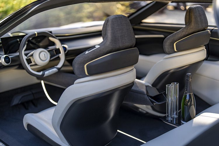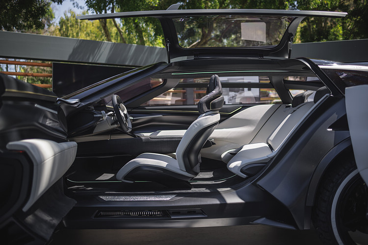 汽車本身亦強調具備輕盈結構與超卓能源效益,搭配外露碳纖維底盤元件、狹窄玻璃車頂和亮面黑色漂浮車頂等設計,則形成鮮明的對比。