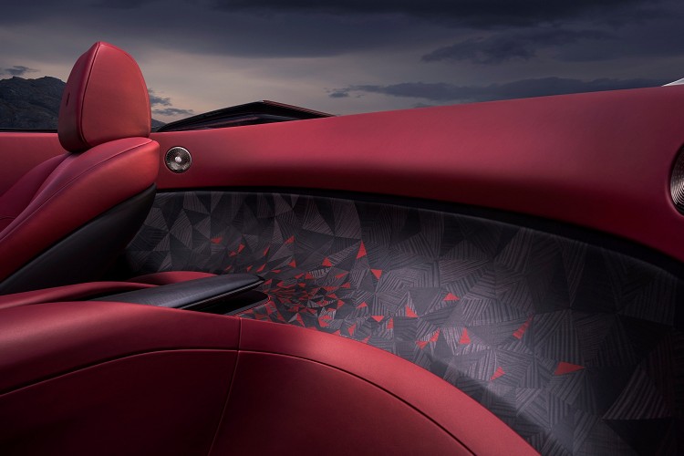 這款曠世之作最為精美卓絕的地方在於其繭式座艙。展現了勞斯萊斯有史以來最為複雜的鑲嵌工藝,凝結了近兩年在設計研發、密集實驗和手工工藝方面不斷突破邊界的成果。這一如藝術品般的鑲嵌飾板由1,603塊三角形黑木飾片拼接而成,抽象地詮釋了飄落而至的玫瑰花瓣。高度複雜的圖案由1,070個完全對稱的設計項目構成背景,533個不對稱佈置的紅色木飾片則演繹了飄落的玫瑰花瓣。客戶特別要求花瓣需設計為不對稱造型,旨在表現花瓣自然、真實地散落。為了向 Droptail La Rose Noire的法國血統致敬,勞斯萊斯從法國採購了黑梧桐木用以打造這一飾板。每個三角形木片都經過精密的手工切割、打磨及精確定位。