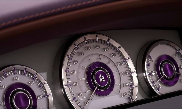 為了讓內飾更臻完美,客戶提出了一個優雅的巧思創意,將珍稀的紫晶石應用於儀錶上。這些寶石呈無琢面的凸圓形,且每顆寶石的深度和淨度都令人驚歎,達到了通常僅用於高級珠寶的標準。每顆寶石都經過客戶集團內的專家進行檢驗,並由客戶親自逐顆給予認可。