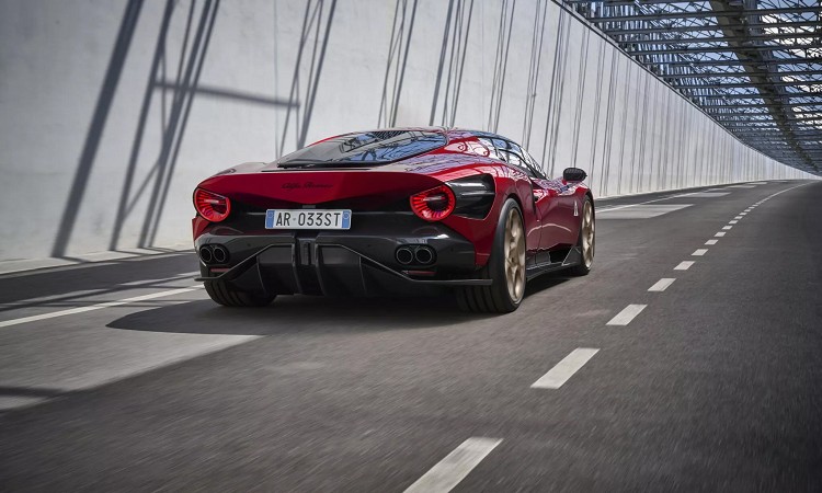 Alfa Romeo表示,不管是內燃機引擎還是純電動立,最高時速都設定在333公里/小時,靜止加速到100公里/小時只要3秒。關於純電車型動力的細節相當有限,只說最大馬力會設定約在750匹,純電行駛距離可達到450公里。內燃機引擎版本,使用3.0升V6雙渦輪增壓引擎,最大馬力620匹,透過八速雙離合器變速箱和電子限滑差速器把動力傳遞於輪上。