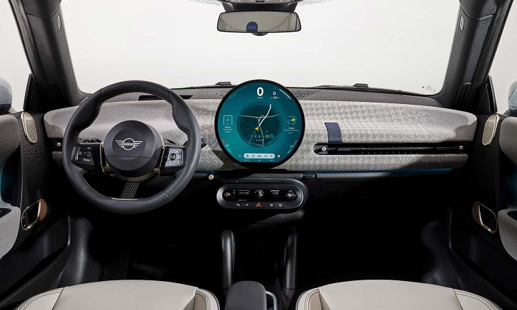 進到車內,設計師採用極簡主義概念,將一切化繁為簡,盡可能減少飾板數量。因此,儀錶板配備一個直徑9.44吋的中央觸控螢幕,系統飾MINI專屬的MINI 9系統,由BMW負責開發,操作模式有點類似Android系統。螢幕下方有全新設計控制介面,啟動/關閉、前後/後退、音量控制等按鍵都放置於此。行李廂空間基本配置下有200公升,椅背6/4分離傾倒後,可以達到800公升置物容積。