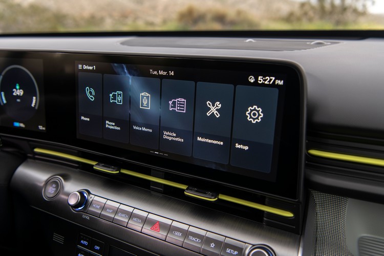 在先進駕駛輔助上,新Kona Electric導入了可在十字路口或切換車道時輔助方向盤操作來避免與前方發生碰撞的FCA 2.0前方碰撞預防系統,以及與前方車輛保持距離,並在前方車輛太慢時輔助切換車道進行超車的HDA 2高速道路駕駛輔助系統。所配備的HUD抬頭顯示器可投影12吋的畫面,提供多項行車資訊。e-ASD(e-Active Sound Design)模擬聲浪系統配合行駛速度、加速度、馬達狀態等參數在車內播放模擬的引擎聲浪,且可對音量或音色做自訂調整。