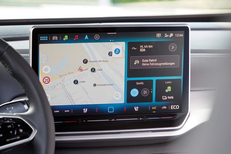 較低規的62kWh電池車型維持配備12吋影音資訊娛樂螢幕,而82kWh電池車型則是配備具有背光照明觸控調整滑桿的12.9吋螢幕,可以更直覺地操作空調與影音資訊功能相關的功能。換檔介面的位置與方向盤的設計也有進行變更。