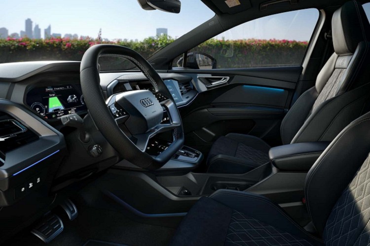 所有 Q4 e-tron標準配備虛擬揚聲器,可以在車內和車外創造出虛擬聲浪增加安全性和運動氛圍,如果你不喜歡這種假假的感覺,也能將其強制關閉。其它升級項目還有標準配備運動化懸吊,可以降低車身高度約15mm,其餘還有雙前座加色座椅、電動開啟充電蓋、原廠MMI導航、輔助變化車道等。