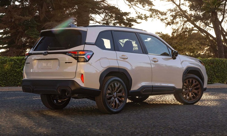 重新設計的外觀大量借鑒了Subaru現有的產品線,具有類似較大的Ascent的車身外觀和從WRX借來的輪拱。三角形的車窗設計現代感十足,看起來有點繁瑣,但Forester低腰線及其高腰線的獨特設計,向第一代車型致敬。車門和行李廂開口更寬、方便進出,Forester的後部還採用了時尚的亮黑色飾條,與尾燈相連。