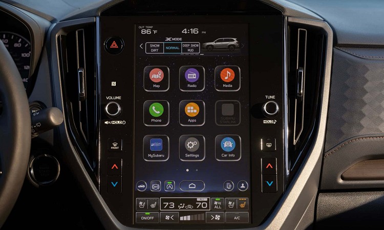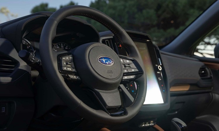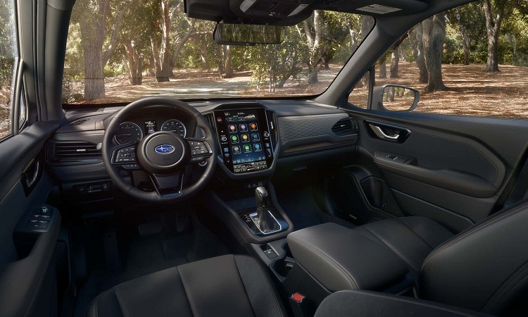 進到車內,有一個全新設計中控台造型,中間配備11.6吋垂直觸摸屏,概念與現行Subaru車款雷同,除了基本車型以外都支援無線智能手機鏡像、Apple CarPlay連接,基本車型則配備7.0吋螢幕用於娛樂和空調控制。除了Subaru熟悉的中央控制台外,整個車內布局都具備Forester特有設計,其中刻意將儀表板上移帶來更大膝部空間,並利用低腰線提供更好的外部視野。
