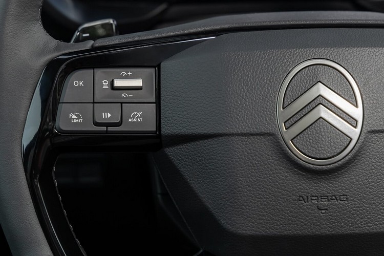 新的方向盤為底部略為平坦的造型,在微凸且帶稜角立體折線的中央配置CITROEN新廠徽。上面的按鍵可以控制音響與定速巡航等功能,還可選配電熱功能。
