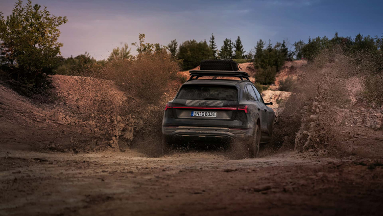 儘管M-Benz還有幾個月才會上市純電動版本G-Class,而Audi則搶先一步,以Q8 E-Tron為基礎,進行輕度越野的調整,將搭載原廠升高套件。除此之外,輪胎更換General Grabber AT3全地形輪胎,比標準版本Q8 E-Tron車型增加約30mm車身高度。不過在不同速度下,其高度最高可達到20mm,但會隨著車速提升逐漸下降。車速達到85公里/小時會降低約15mm,車速來到100公里/小時則下降17mm,車速高達120公里/小時則下降約13mm。