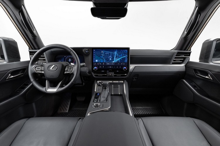 豪華內裝進入車內,新的儀錶板位置較低也較為簡化。HUD抬頭顯示器位置移至控台中央,中控台配置14吋觸控螢幕支援無線 Apple CarPlay與有線Android Auto連結操作;空調和音量等常用功能的實體旋鈕都保留,而與越野相關的功能控制則集中於排檔桿附近。
