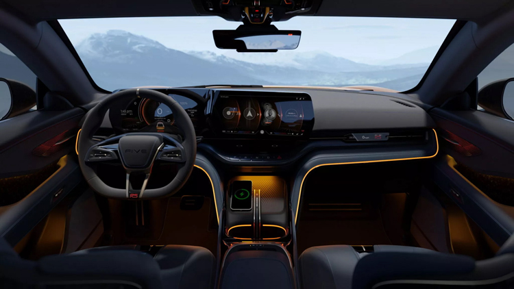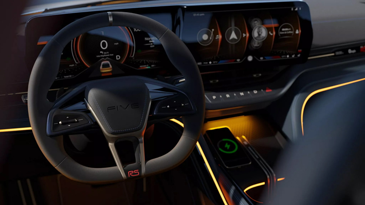 為了確保能保持相同水準的加速表現,Mullen表示針對Five RS設計一種高性能賽道模式,進入到此模式中,會針對電門反應、動力總成、電池冷卻、避震器和方向盤回饋力道做改變,以提供駕駛者最佳的駕駛體驗。制動性方面,前輪配備Brembo六活塞卡鉗,後輪則是四活塞卡鉗,碟盤則是選配陶瓷套件。鋁圈使用鉗21吋、後20吋規格,根據原廠表示,Five RS可以在100公里/小時速度下在33公尺的距離完全停下。