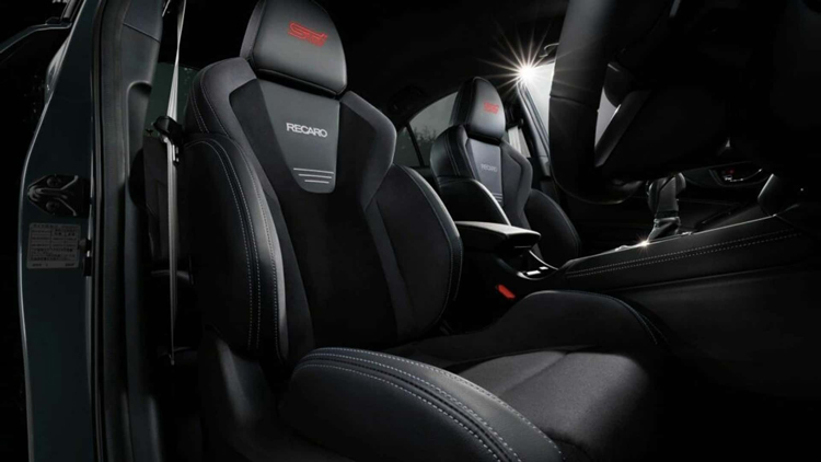 內庄同樣有專屬於限量車款配備,前雙Recaro賽車座椅,頭枕上繡有紅色STI標誌。整個座艙內還採用顏色縫線,並非大家以為的紅色。座椅上的麂皮材質也應用在中控台、扶手和儀表板。Subaru也表示,在後車廂備胎處增加額外阻燃材料,大大增加車內肅靜度。