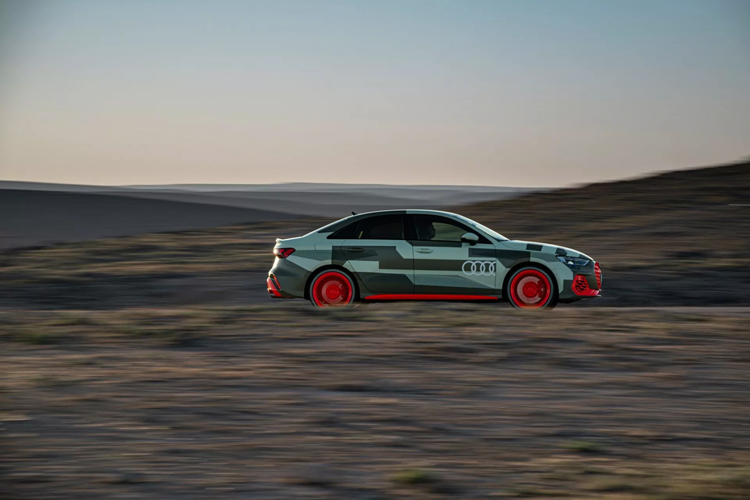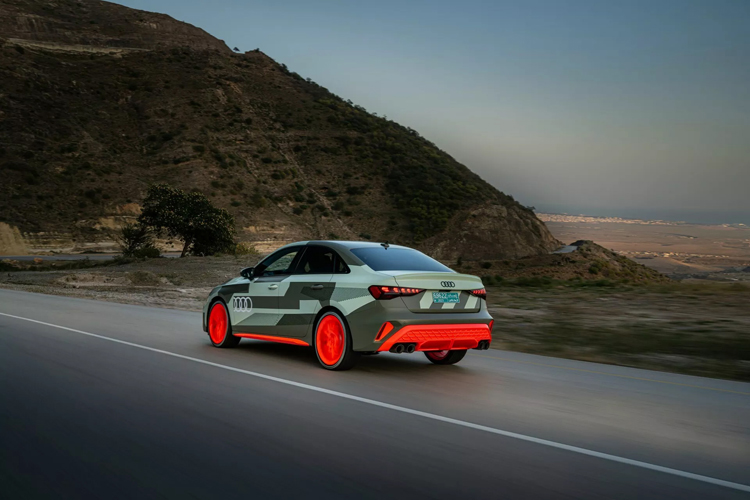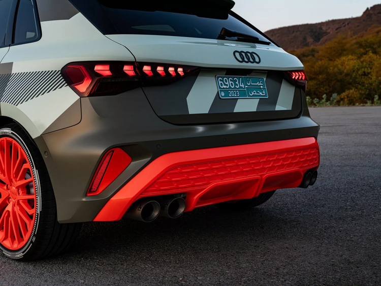 Audi所公布的照片看起來正在進行測試,而且是在中東的某一個國家。從偽裝的車身線條能發現,S3換上一套小修改前保險桿,其特點是修改進氣格柵的樣式;車尾則是全新保桿,Diffuser樣式不同外,反光片從水平改為垂直,並融合在格柵之中。而最大量點是,車尾照片中發現S3使用一套Akrapovic排氣管和角度更大繞流板。