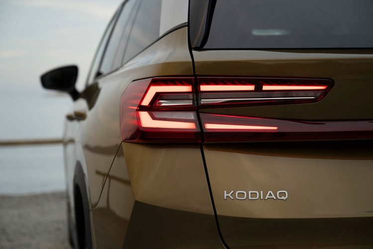 在現行車既有的堅固與雕塑感設計之下,SKODA又為新Kodiaq添加了不少粗獷氣息。輪拱換上偏方形的設計,引擎蓋上的廠徽與車尾的深鉻色SKODA字樣都換上了最新的版本。水箱罩換上了暗鉻飾面且本身可以自發光在頭燈間形成光帶。水箱罩下方有寬闊的蜂巢格柵進氣壩,兩側則有導氣口( Air Curtains)的設計。