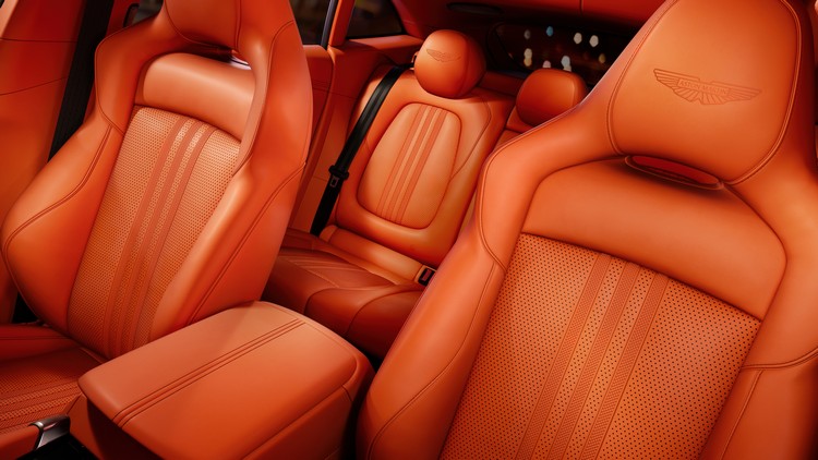 車廠提供三種不同的內裝規格:Inspire Comfort 對內裝包覆材質做了矩陣刺繡和絎縫處理; Inspire Sport 具有向量刺繡和 Alcantara Accelerate皮革材質包覆增添了額外運動氣息。當然,透過阿斯頓馬丁的客製化服務 Q by Aston Martin,還可以為車主提供進一步的內外裝客製化。