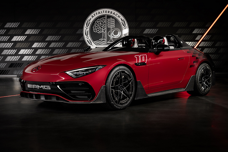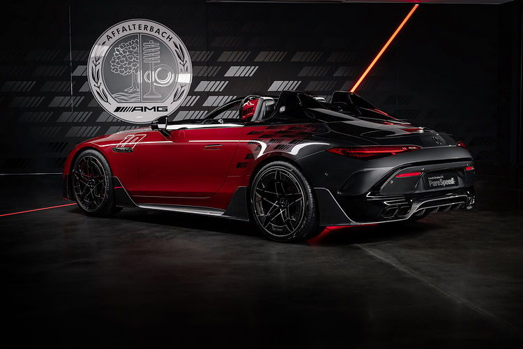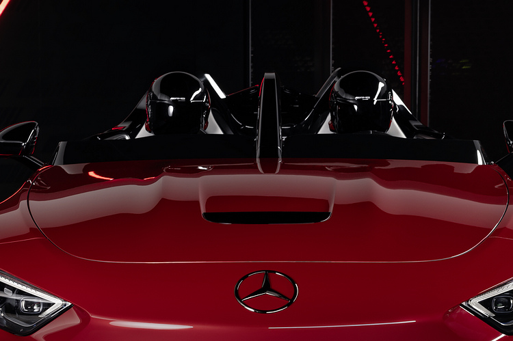 Mercedes-AMG在F1摩納哥大獎賽舉辦期間,公開了Mythos系列第一款作品,這是一款造型大膽前衛的PureSpeed概念車,與SL一樣是敞篷雙座的設定,但除了沒有車頂,也沒有前擋風玻璃,為了確保車輛的安全性,就直接導入了F1賽車的Halo防護裝置。