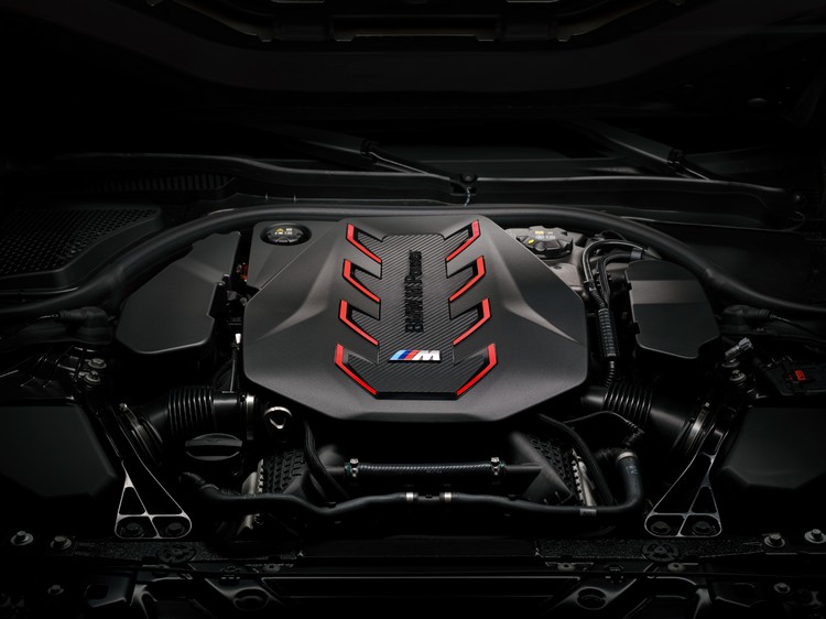 得益於M TwinPower Turbo技術、跨缸交叉排氣歧管與優化的油分離措施,這具V8引擎可以輸出585hp最大馬力與750Nm最大扭力。電動馬達的最大輸出功率為197hp,額定最大扭力為280Nm不過在透過前置齒輪組之下動力輸入端的有效扭力提升至450Nm。引擎與馬達的組合遵循BMW M Hybrid V8 耐力賽車上驅動系統相同的原理,能夠毫不延遲地回應每個油門操作動作。引擎最高轉速可達7200rpm,讓駕駛者感受到源源不絕的動力輸出直到極速。系統綜效最大馬力為727hp、最大扭力1000Nm,0-100km/hr加速成績3.5秒,車子在限速器做動之下極速為155mph,如果選配M Driver’s Package套件則可將速限門檻提高至189mph。
