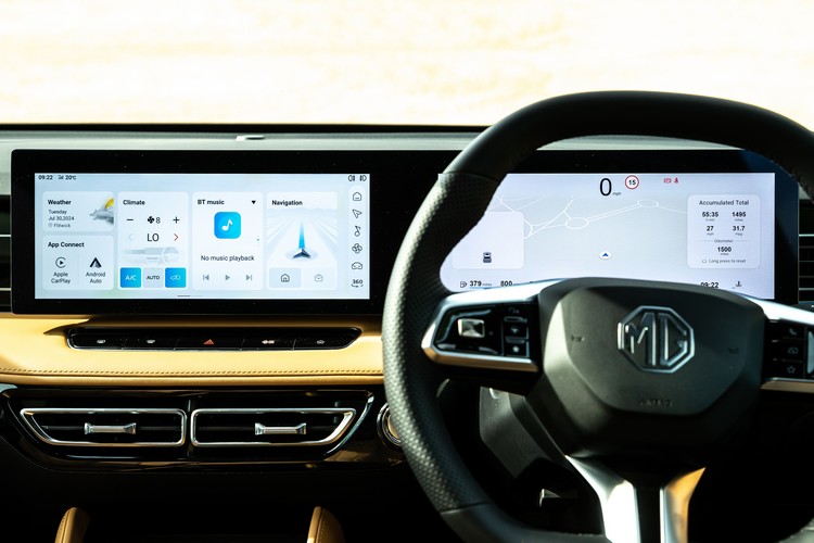 車頭水箱罩承繼了MG最新的設計語言,纖細造型的頭燈則強調出科技感。水平貫穿車尾的LED尾燈呼應了頭燈的設計,兩側的「X」字形設計再夜間也有很好的辨識度。