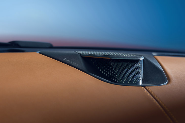 車上的 Bowers & Wilkins音響系統具有15支單體提供1170W功率輸出,包括車頂內襯也埋設了高音揚聲器,搭配低音揚聲器和重低音組成3D環繞音響空間。QuantumLogic Immersion技術則為座艙客製調校音響品質,並由鋁製雙圓頂高音揚聲器和Continuum中音揚聲器確保最佳音響效果。