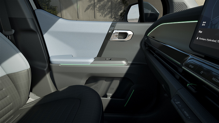 寬達76.2公分(30吋)的Trinity 全景顯示面板是座艙視覺焦點所在,內建80多項的連網功能,包括導航系統、無線Apple CarPlay和Android Auto、無線OTA軟體更新,並且導入了Harman Kardon Premium音響系統含8支揚聲器、無線充電座、遠端服務輔助導航等功能。其他配備還包括了雙窗格全景天窗、64色氣氛燈、4向電動駕駛座椅。