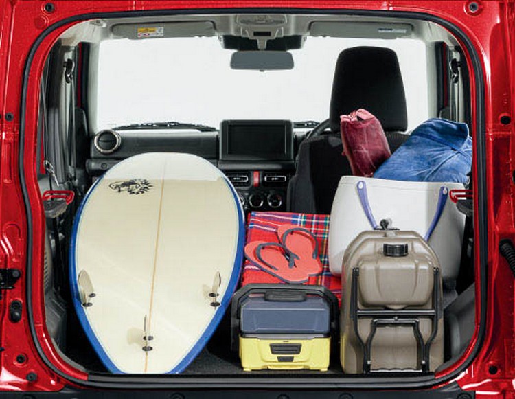 由於軸距比三門的Jimny Sierra加長340mm,直進穩定性與操控穩定性都會來得更好,在坐滿四人時行李廂地面長度也比Sierra多出359mm,所使用的高摩擦力的地毯也能防止物品滑動。車輛安全上,包括雙攝影機式撞擊預防輔助、倒車自動煞車輔助、倒車防爆衝輔助、ACC主動式定速巡航導入四速手排車型等,配備算是充實。