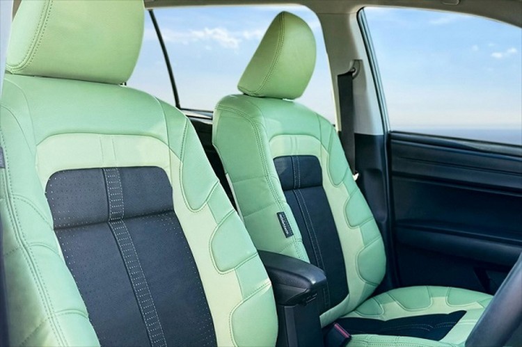 這次的特式車是以戶外遊玩為設計主題,所以所設定的兩種車身色─「小溪藍」與「翡翠綠」都是很能配合戶外自然環境的色彩。車內的皮椅在設計上則是參考了登山鞋的設計做為發想,並以與車身色同色系來呼應。還提供了專用的15吋圈胎套組與車頂行李固定架套組做為經銷商選配。