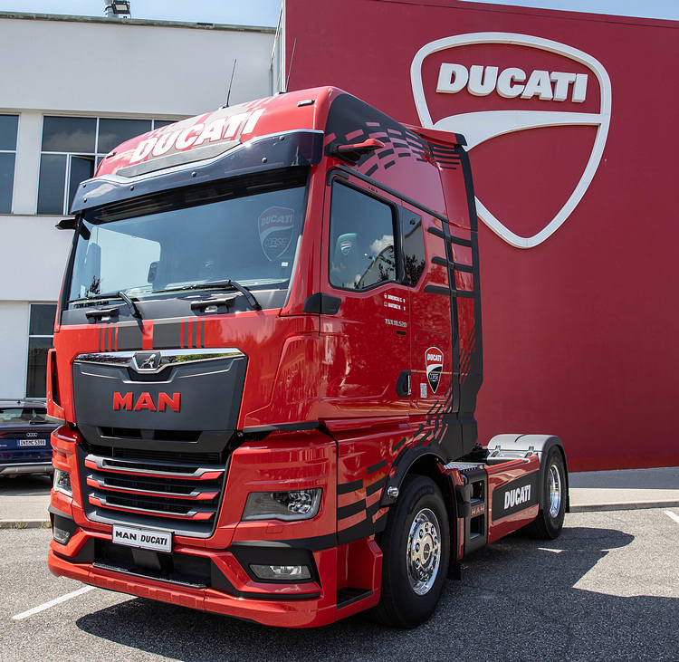 MAN商用車(MAN Truck & Bus)5月15日在義大利發表與同屬Volkswagen集團Ducati聯名的MAN TGX Ducati Edition限量車型,除了搭載Ducati認可的客製化套件配備,還換上Ducati MotoGP廠隊的紅黑塗裝,先期將限量發售30輛,之後將會以套件名義提供買家訂購,訂購者還可獲得參觀Ducati工廠及前往聖馬利諾摩托車大獎賽的機會。