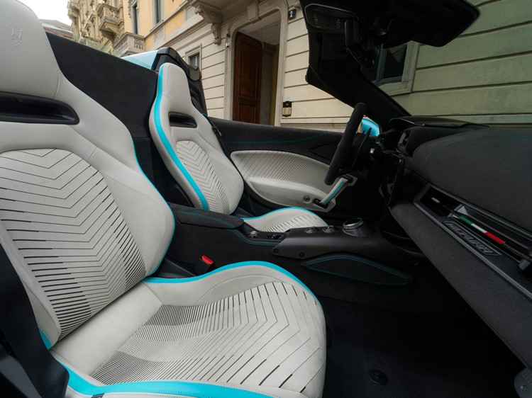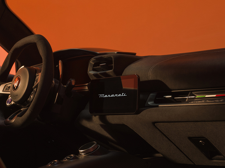 內裝部分,兩款車型均搭載以Alcantara Ice材質打造的全新座椅,並透過雷射雕刻突顯三叉戟標誌,展現極具未來感的運動風格 ,座椅設計運用紅藍交織的虹彩效果呼應車身塗裝的流動光影。
