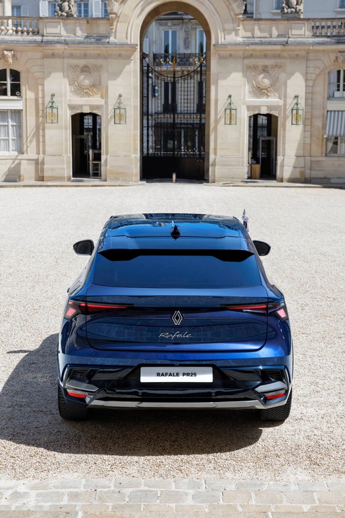 RENAULT發表了以Rafale E-Tech 4x4 300 hp為基礎所打造的法國總統座駕,該車在RENAULT位於 Guyancourt 的設計中心打造。外觀上線條經典和諧,並透過多個獨特而低調的設計元素加以點綴,例如法國國旗配色的水箱護罩、可拆卸的旗桿座,以及前門上的藍、白、紅徽章。 車身採用獨特的「總統藍」色調,並融入可將外界熱度吸收限制在 10°C 的技術,提升車內的乘坐舒適度。車漆在陽光下還會呈現藍、白、紅三色的閃爍效果。