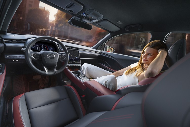內裝方面,黑色半苯染皮革座椅搭配深玫瑰色靠墊、肩部、膝部護墊、中央扶手和前車門扶手。為展現運動感和LEXUS 的精湛工藝,座椅靠背採用紅色雙軌榻榻米風格縫線,並配備深玫瑰色安全帶。
