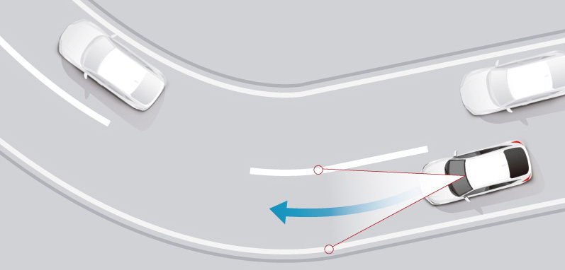 在高速道路或汽車專用道使用ACC車距調節式定速巡航系統進入彎道時,系統會適度地調整車速,車頭攝影機會判讀入彎前車道線的曲率,讓車輛可以更平順地通過彎道。
