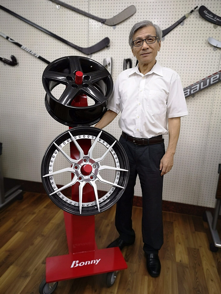 波力環球(Bonny)於「台北國際汽機車零配件展」展示最新開發的碳纖維複材汽車輪圈,標榜通過德國TÜV及美國SAE測試,並取得IATF16949認證,以及中國大陸極寒路測、極端路測。波力環球碳鋁複合輪圈首創提供業界最高的舊車8年/新車60萬公里保固,單顆售價18萬元,一輛車同時改裝四顆組合價68萬元。
