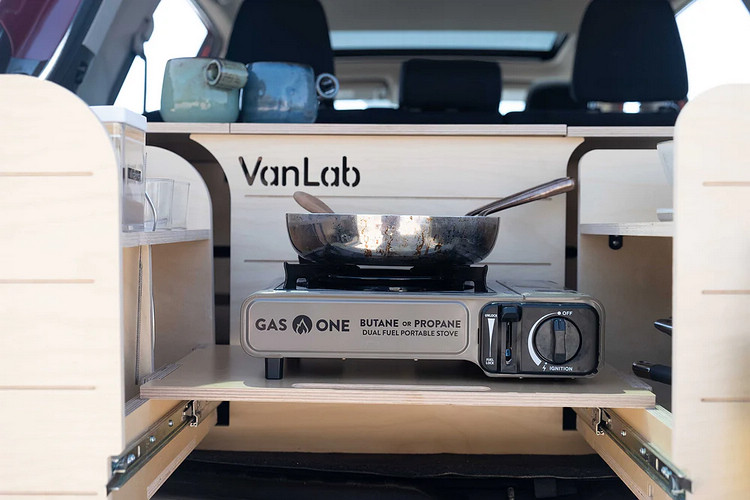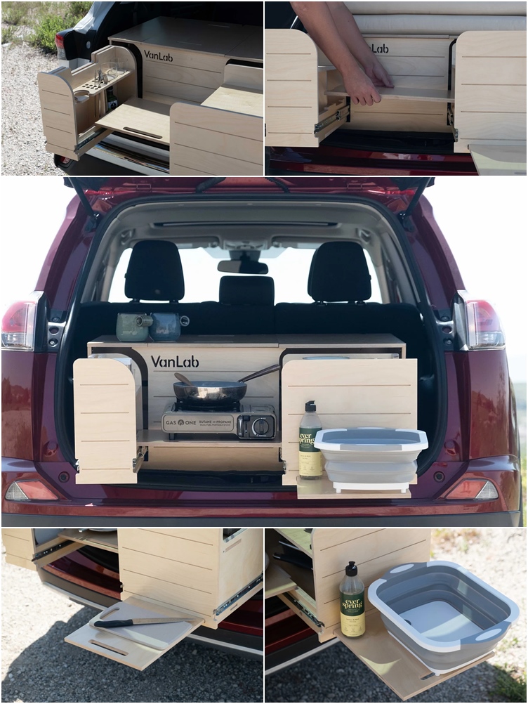 美國戶外用品設計商Van Lab最近推出一款SUV專用的行動露營廚具套件,適用於RAV4、Kuga等市面上熱門SUV或跨界車,將套件直接置入後廂即可讓平日的代步工具秒變成為一部行動餐車或輕裝露營車,套件並可依照需求選配床組。