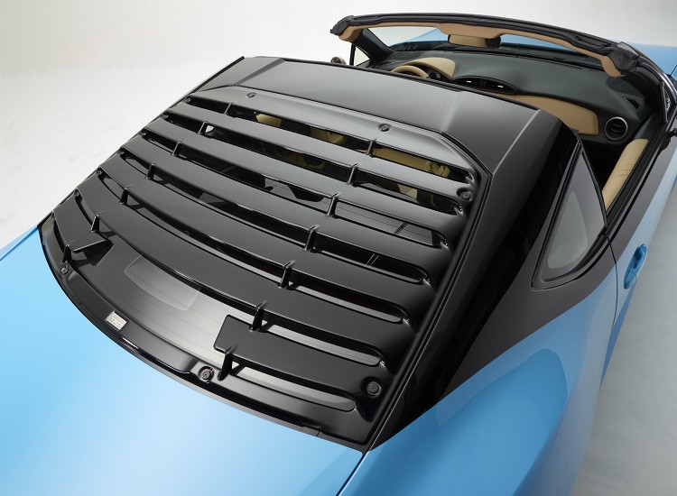 ![]() 這輛命名為FR-S T1擁有Porsche Targa車型的經典設計,Cartel Customs改裝廠將車頂切除重新安置,並且將後座進行修改,好可以卸除下的頂篷,完整性相當高,絕對不像外面土炮改法,就連防水膠條都像是原廠設計。外觀維持FR-S造型,只加裝更霸氣的空力套件,包含更寬的輪弧、前後保桿、左右側裙等,後擋風玻璃外層有類似百葉窗的特殊設計,第一眼看到有些突兀,不過當車輛開篷時,反而有種特殊美感。後排氣管改為中間中出,並更換直通的排氣管中尾段,提高排氣順暢。