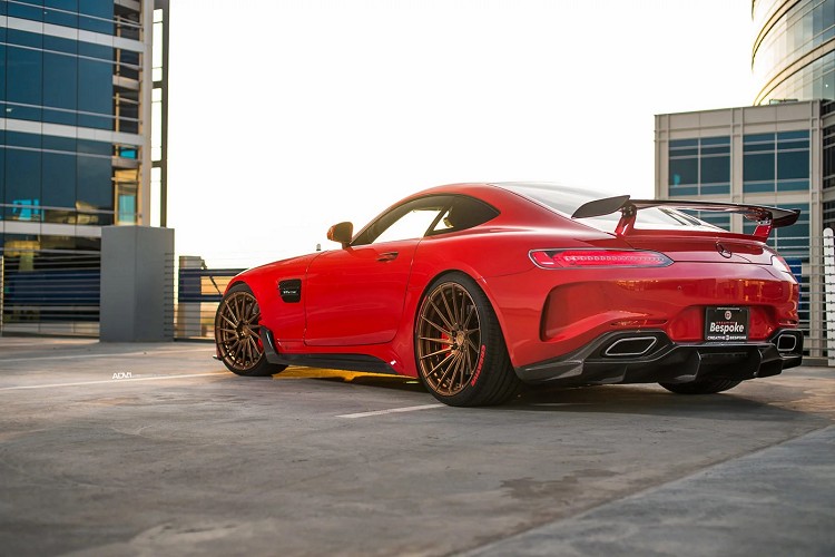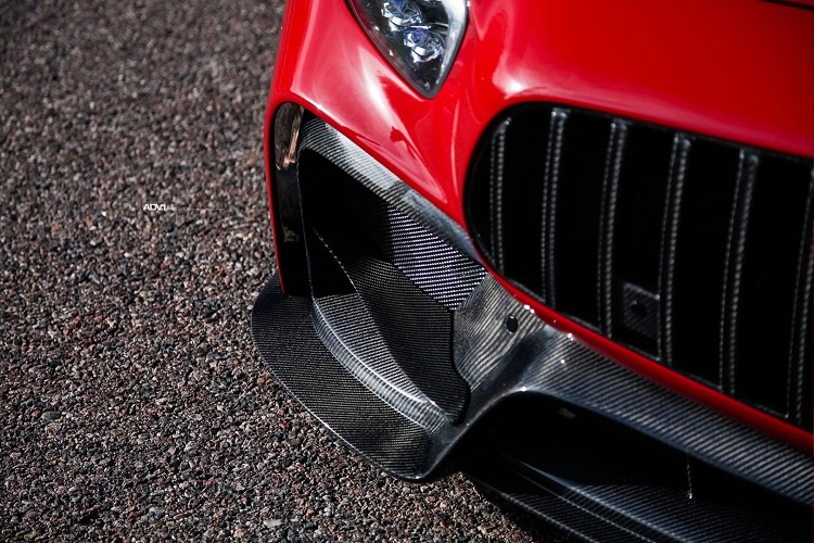 鋁圈選用ADV.1品牌,前為220吋10J、後為20吋12J,拋光的消光棕色帶有一點鈦金屬色澤,有如穿上了名牌球鞋般的帥氣。懸吊部分只換裝專為AMG GT所設計的H&R短彈簧,降低後的車身高度輪胎剛好能塞滿塞好整個輪弧,視覺上帶來低、趴的霸氣。最後,這輛AMG GT S車色選用了特殊的塗裝工法,塗裝Designo風信子紅色金屬色,車主似乎想要成為路上的注目焦點。