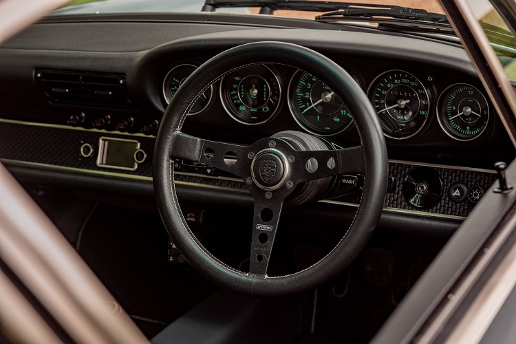 ![]() 這兩款特別的Singer 911中的第一款由「Sussex」委託,要打造一款特別的紳士賽車。與其它Singer 911不同,「Sussex」Singer 911被作為日常代步車,從通勤、上班、出遊到賽道都能全面兼顧。外觀採用了特殊的灰色,車側有Porsche條紋貼紙以及專屬銘牌。車內採用黑色為主要色調,並它配上桶型復古賽車座椅以及917風格的排檔頭。要兼具日常與賽道使用,動力換上一具六缸4.0升引擎,配合陶瓷煞車系統,跑得快也能停得下來。