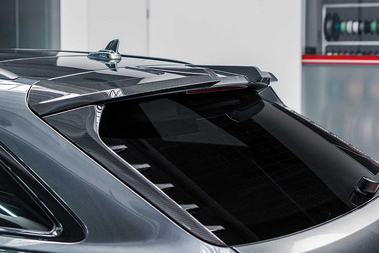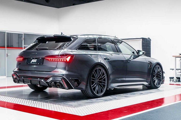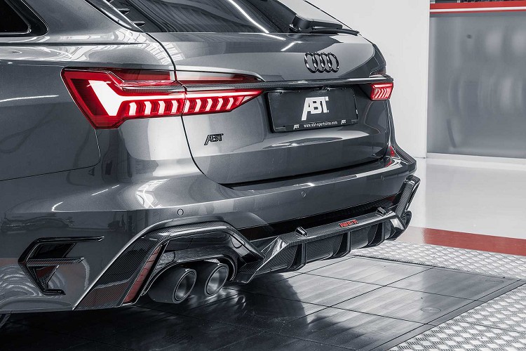 Audi RS6-R Avant車頂後部,ABT加裝上一組有實質效益的尾翼,並且是由碳纖維所打造,高速行駛時車尾可帶來下壓力。排氣管維持雙邊雙出設定,雄厚的特殊聲浪是ABT專屬。鋁圈換上22吋外爪放射式ABT鋁圈,煞車維持原場RS6-R設定,碳纖維陶瓷煞車帶來絕佳制定性能。