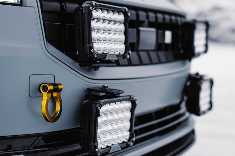 而在賽車安全規範中,前後都必須有可以快速的拖車鉤,Polestar 2 Arctic Circle當然也不例外,在後車廂內,還特別放置碳纖維雪產,避免深陷雪地中可以自行脫困。內裝換上兩張Recaro賽車桶型座椅,中控台飾板則更換碳纖維材質,外觀者是專屬消光白色的訂製漆面。