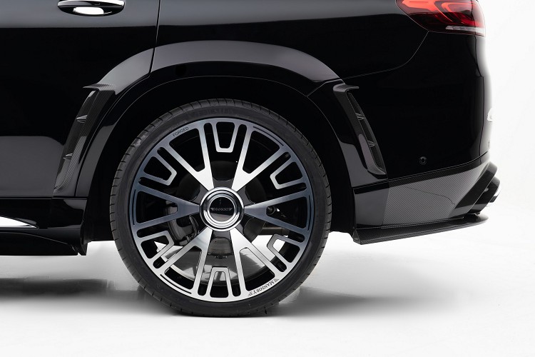 Mansory專門為Mercedes-Maybach GLS 600開發了一種特殊的輕質碳纖維車身套件,在不大變動原廠樣貌之下,提升整體質感。首先,包含一個特殊設計前保桿,帶有醒目的導流片,車身加寬的前後輪弧,獨特造型的後視鏡以及經過修改的側裙,再加上後方擴散器與四出排氣管,Mercedes-Maybach GLS 600有如脫胎換骨,除了原有豪氣之外,多了幾分運動感。